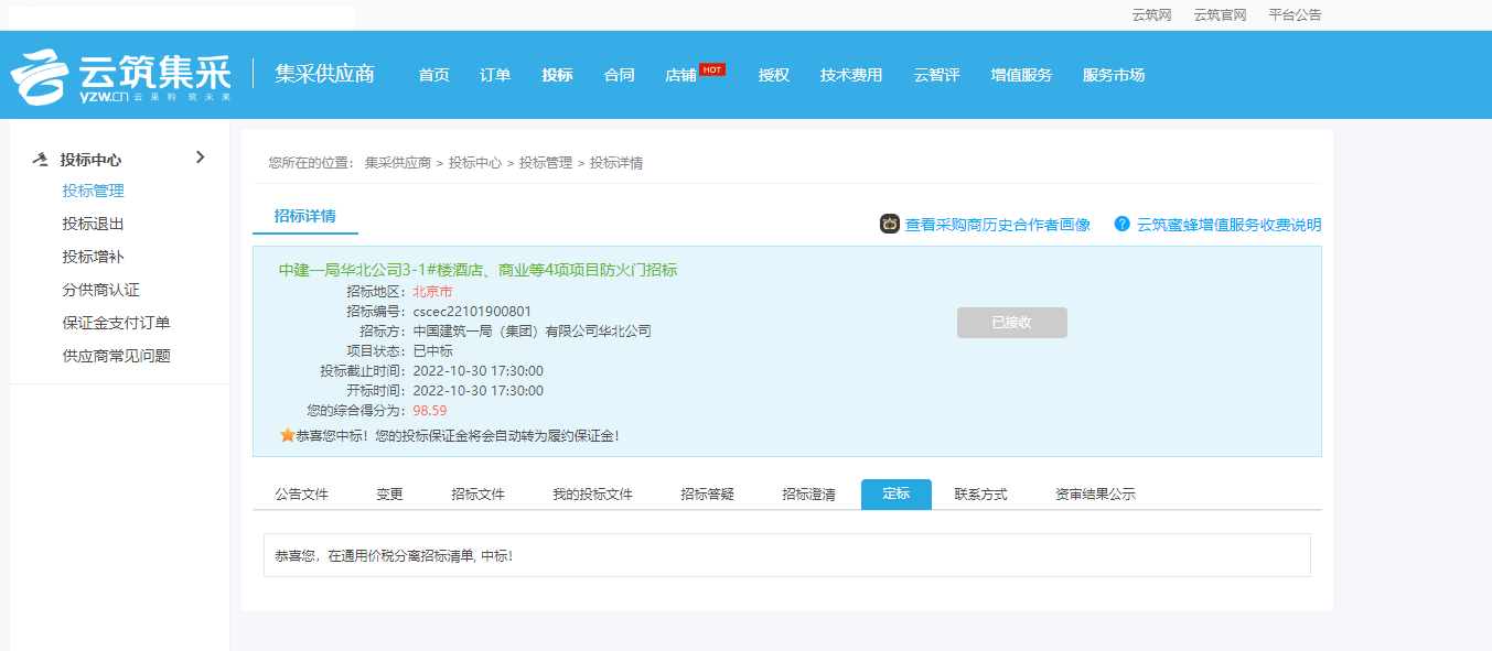 近日,精品国产人妻一区二区三区久久集团成功中标-中国建筑一局(集团)有限公司华北公司“3-1#楼酒店、商业等4项项目防火门招标”项目。