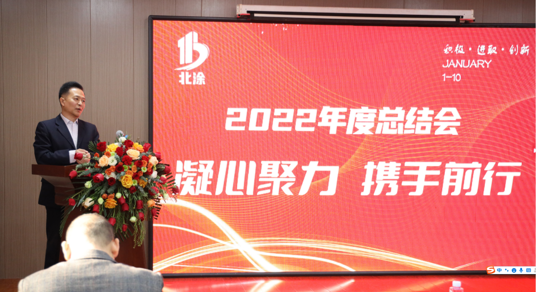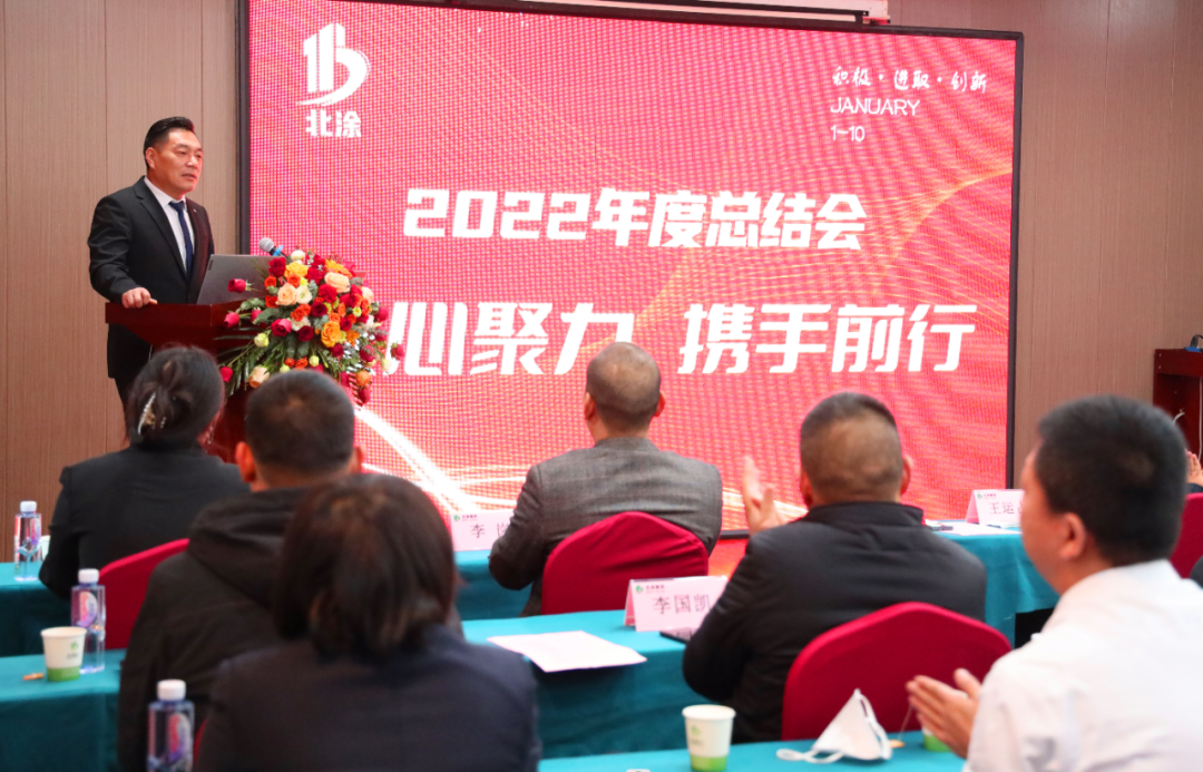 最后,集团总裁薛正龙先生做了2022年度工作报告及未来三年的发展规划。他指出:2022年,全体员工齐心协力,顺利完成了全年的工作任务。在市场竞争日趋激烈的情况下,维稳了公司业务,创造了公司业绩,这归功于所有北涂人的辛勤工作和不懈努力;这一年,公司机构改革初见成效,管理制度修订完成,核心管理岗位人员也已到位,员工的薪酬福利得到了一定的提升;这一年,我们做了充分的准备工作,为明年的工作奠定了良好的基础。