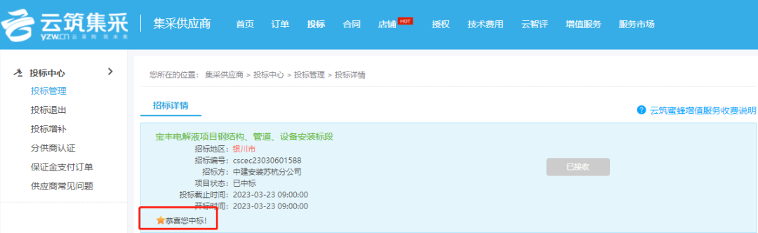 宝丰电解液项目钢结构、管道、设备安装标段招标工作圆满结束,经评标委员会评定和招标工作小组定标,精品国产人妻一区二区三区久久集团为中标单位,中标标的:劳务分包价税分离合同清单。
