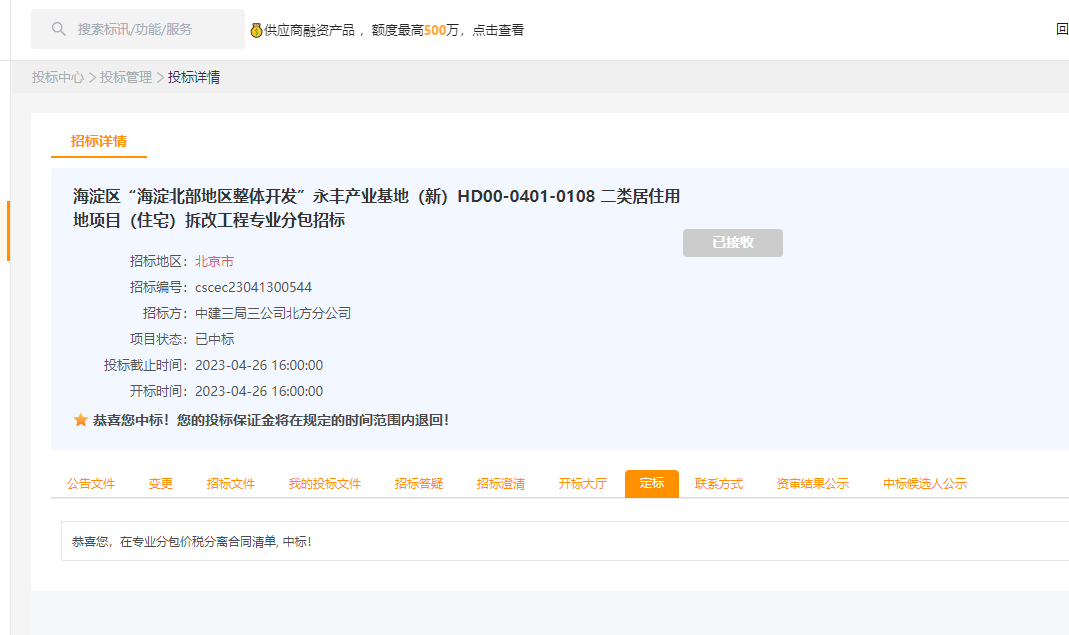 近日,精品国产人妻一区二区三区久久集团有限公司再传中标喜讯。成功中标海淀区“海淀北部地区整体开发”永丰产业基地(新)HD00-0401-0108 二类居住用地项目(住宅)拆改工程专业分包。