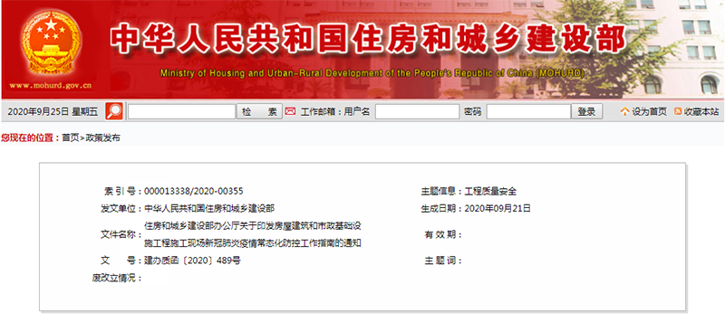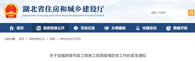 住房和城乡建设部办公厅发布的《关于全面加强房屋市政工程施工工地新冠肺炎疫情防控工作的通知》:
